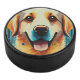 Cette joyeuse illustration de Golden Retriever est un excellent design pour les amoureux de les chiens et les propriétaires de Golden Retriever. Il a une couleur bleu-vert arrière - plan et il convient à la plupart des combinaisons de couleurs.