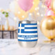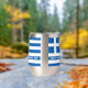 Celebrate Greek Independence Day with this striking March 25th stainless steel stemless wine tumbler, which features the iconic blue and white colours of the Greek flag and celebratory greetings in a Greek-inspired font. Yamas! Reverse shows identical design.