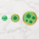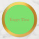 Happy green clovers on green background with golden frame table confetti. Ideal for birthdays, Saint Patricks Day, anniversary, and any other lovely celebration. All text can be personalized.