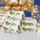 Happy green iguana cartoon illustration wrapping paper