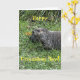Photo of a groundhog sitting in the grass, with Happy Groundhog Day in yellow and white letters, is printed on custom greeting cards. The text is easy to customize on the template forms. Be sure to customize both the yellow and white letters with the same text to layer the letters. Thank you for shopping at CherylsArtPhotos on Zazzle.
