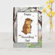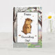 Happy Groundhog Day greeting card. Inside is an explanation of the tradition of Groundhog Day which is on February 2nd. Front of the card is a cute groundhog and the background is half Spring and half winter.