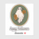 This cute sticker features a vintage inspired ghost with fall flowers on a background of matching green and orange. Personalize the text with your special message.