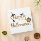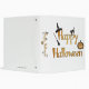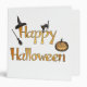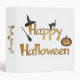 Happy Halloween! Fun, decorative writing with a witches hat, a witches broom, a black cat, and a jack-o-lantern pumpkin.