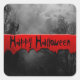 A custom Happy Halloween sticker with a spooky sky with misty trees along a dark haunted road, gothic ravens and a cloudy full moon. Click Customize It to change fonts, sizing and more, even save your design for later.
