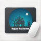 Happy Halloween Blue and Black Haunted House Mouse Pad