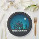 Happy Halloween Blue and Black Haunted House Paper Plate