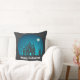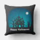 Happy Halloween Blue and Black Haunted House Throw Pillow