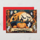 This is a joyful, happy, fun Halloween card to be used as desired. It includes many of the Halloween symbols in a spirited way. The wording on the front banner can be removed an replaced and the back can be personalized with your own text.