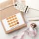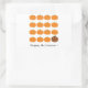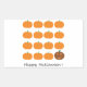 A cute patch of festive orange pumpkins are joined by a happy little holiday jack o' lantern at the end of the line. Happy Halloween!