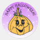 Happy Halloween Cute Whimscical Pumpkin Purple Classic Round Sticker