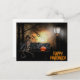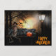 Happy Halloween Funny Spooky Skeleton on the Bench Holiday Postcard