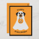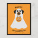 Illustration of a dog dressed as a ghost trick or treating for Halloween.
