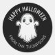 Happy Halloween Ghost Smiling Custom Text Black Classic Round Sticker