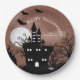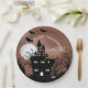 A large black castle and bare trees against a spooky night sky, these personalized Happy Halloween paper plates are fun for a Halloween costume party, Halloween birthday party or any occasion. MATCHING items in our collection.