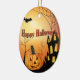 Happy Halloween Jack O' Lantern and Haunted House Ceramic Ornament