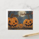 Light up your someone's life with this cozy autumn scene featuring glowing jack-o'-lanterns beneath a bright full moon. Perfect for creating a festive, spooky vibe in the mail. Enjoy a moment of fall magic as swirling vines and crisp leaves frame the pumpkin patch. Ideal for fans of autumn decor and Halloween art.