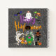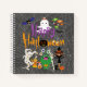 Happy Halloween Kids Cute and Spooky design that is loaded with colour and tons of ghoul! From a cute ghost to a Dracula bat and pumpkins with witches, mummies, black cats, dancing skeletons a scare crow and even candy to complete the scene! All over a creepy spider web background!