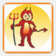"HAPPY HALLOWEEN" LITTLE DEVIL HOLDING PITCHFORK CARTOON