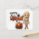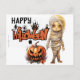 A Cute Happy Halloween Mummy Greeting Postcard With Jack O Lantern