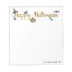 Happy Halloween! Fun, decorative writing with a witches hat, a witches broom, a black cat, and a jack-o-lantern pumpkin.