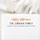 Personnalisé, personnalisé, tendance, chic, amusant, police éffrayante, joyeux halloween orange noir et blanc, nom de famille invitations mail retour adresse étiquette. Entrez simplement votre nom / nom de famille / nom de société, et adresse, pour personnaliser. Parfait pour les deux, maison et affaires, adultes et enfants, publipostage personnel et officiel. D'excellentes étiquettes d'adresse de retour à utiliser sur les mailings pour zombie éffrayant effrayant hantée halloween thème fête d'anniversaire, fête de bureau, mariage, baby shower, et plus encore.