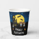 This fun and spooky paper cup features cute werewolves beside a crooked haunted house. In the background is a full moon with bats and a blue night sky with stars. This is perfect for Halloween.