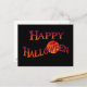 Happy Halloween greeting with a spectral bat flying across a full October Moon.
