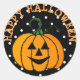 Happy Halloween Pumpkin Face Stickers with black and white polka dot background
