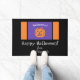 This Halloween doormat is cute, fun and a little spooky! Black background with purple, orange and white with an orange pumpkin and the word Halloweeeen in a fun font. In two fonts (a fun font and a script) are the words "Happy Halloween from <Custom Family Name>!" Classic, classy and fun!