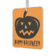 Happy Halloween pumpkin head carving car air freshener. Spooky black and orange jack o lantern design to refresh your auto with different cool scents. Unique gift idea for friends and family. Double sided design. Add your own funny slogan or saying.