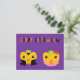 Happy Halloween Pumpkins postcard. Customizable postcard has two cute pumpkins dressed up in vampire and princess costumes on a purple background and says Happy Halloween in orange and black letters.