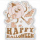 Funny Retro Halloween greeting card teplate with retro cartoon Pumpkin Character in groovy 70s Vintage Style. Happy Halloween Illustration with hunting for sweets concept. Contour vector illustration