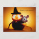happy Halloween. Small cute mouse with pumpkin Postcard