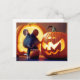 happy Halloween. Small cute mouse with pumpkin Postcard