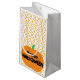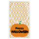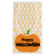 A festive Happy Halloween pumpkin sits atop a custom digitally designed pattern of streaming abstract pinwheel shapes.