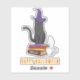 Summon a touch of spooky charm to your home this Halloween with our custom black cat sticker. This design features a sleek black cat perched atop a stack of ancient spell books, creating a scene that's both magical and mysterious. Perfect for adding a festive flair to your possessions, windows, front door, or even a glass cabinet, these stickers are a simple way to transform a simple item into a bewitching haven. Decorate your laptop, water bottle, and notebooks for a bit of holiday spirit or surprise a book-loving friend with this unique and enchanting design.