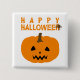 A Halloween button with a pumpkin and a 'Happy Halloween' text on white. Customize the white background among other options.