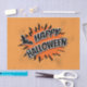 Happy Halloween comic style illustration with text design, bat and stars decoration on halftone background. It is possible to change the background colour and to add different one to the design with your choice.