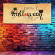 This cute Halloween banner adds a whimsical touch to your spooky celebrations. The design features playful typography that reads "Happy Halloween," with a smiling black cat, a cheerful spider, a pumpkin, and a delicate cobweb adding charm. The soft orange background evokes the warmth of autumn, making it perfect for hanging indoors or outdoors at Halloween parties, trick-or-treat setups, or even home decor. Celebrate Halloween in a fun and friendly way with this lighthearted, adorable banner!