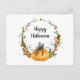 Happy Halloween Watercolor Pumpkin Wreath Postcard