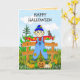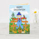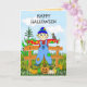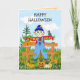Happy Halloween Whimsical Scarecrow and Pumpkins Card