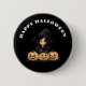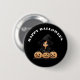 Happy Halloween Scary witch Button. It is Orange and black Happy Halloween with a screeching black cat can be customized to add names, text, or sayings. Click "customize it" to add yours. It is great for fun Halloween gifts and treats!