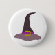 Happy Halloween Scary witch Button. It is Orange and black Happy Halloween with a screeching black cat can be customized to add names, text, or sayings. Click "customize it" to add yours. It is great for fun Halloween gifts and treats!