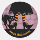 Happy Halloween Witch Legs Black Cat Purple Classic Round Sticker