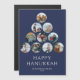 The greeting cards that your friends and family will keep and enjoy for years to come! Can't pick just one or two of your favourite family photos? These 5" x 7" refrigerator magnets feature placeholders for 10 of your favourite photos, family name and year. The photos are all round in shape. The greeting, “Happy Hanukkah,” is in white. The background is navy blue.