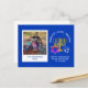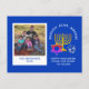 Stylish, elegant family photo postcard to celebrate HANUKKAH. Design shows a gold colored MENORAH with multicolored STAR OF DAVID and silver gray DREIDEL. At the top there is curved text which says BARUCH ATAH, ADONAI (Blessed are You, O God) and underneath the text reads HANUKKAH BLESSINGS FROM OUR HOME TO YOURS. On the reverse, there is a placeholder message, surrounded with a gold colored border. ALL TEXT IS CUSTOMIZABLE, so you can personalize with your own choice of greeting and text. With customization, eg. 'from our business to yours', this would also make a great corporate greeting card. You can also upload a family photo. The main color is Israeli blue. Other versions of this card are available in the HANUKKAH Collection by Berean Designs.