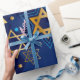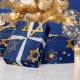 Happy Hanukkah, star of David, Menorah, blue pattern wrapping paper.