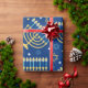 Happy Hanukkah Blue Star of David Menorah Wrapping Paper