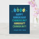 Share the joy of the holiday season with your friends and family with this humorous Happy Hanukkah Chanukah Dreidel Greeting Card. This design features colorful dreidels on a navy background surrounded by confetti. Pair with other items from the Hanukkah Dreidel Party collection for a cohesive, festive celebration.